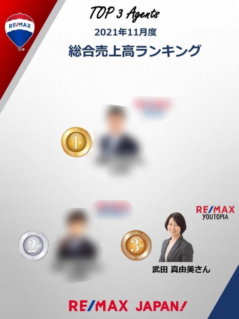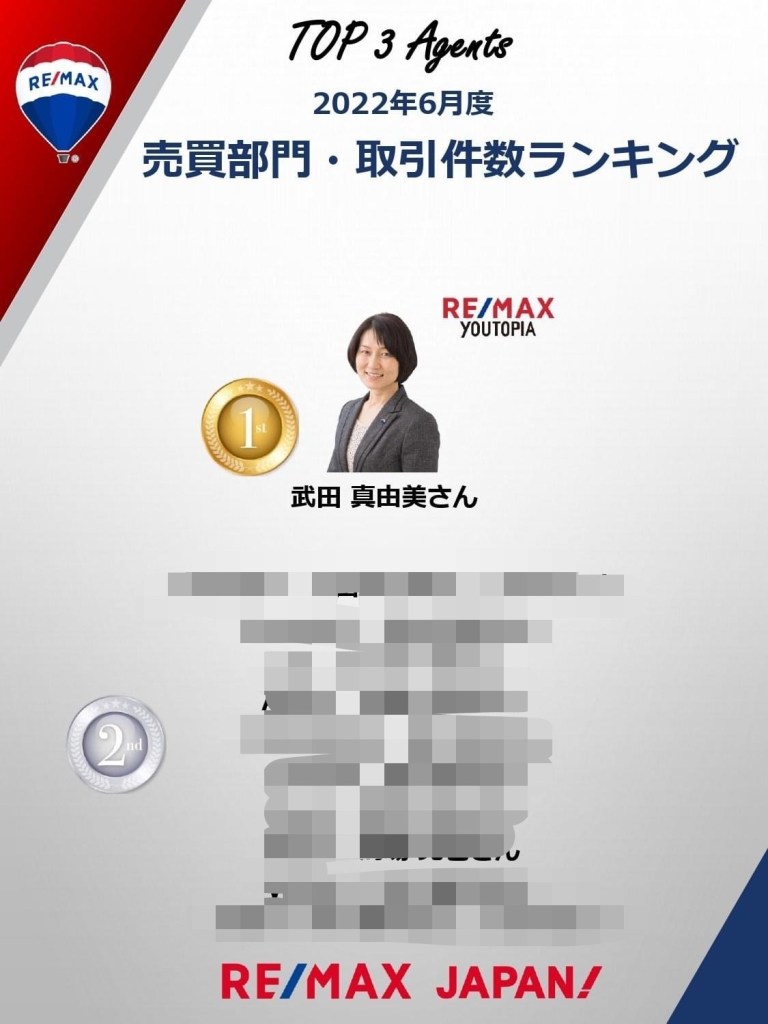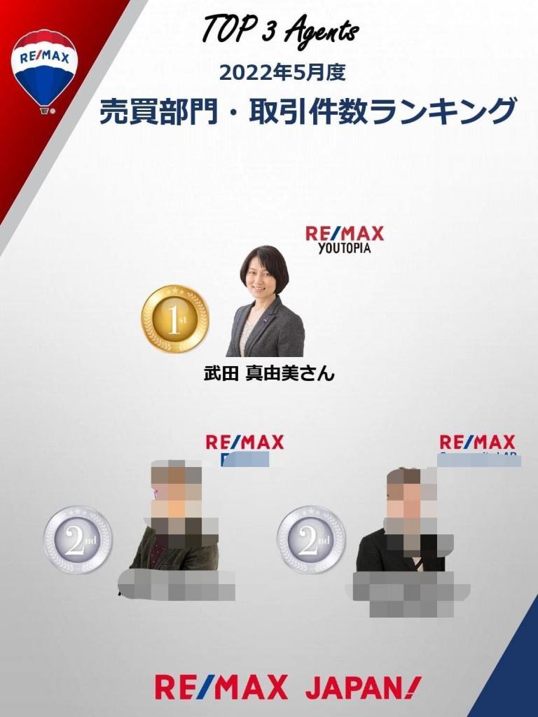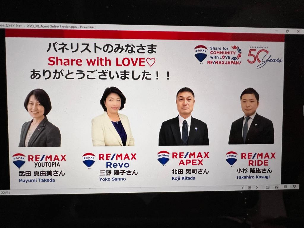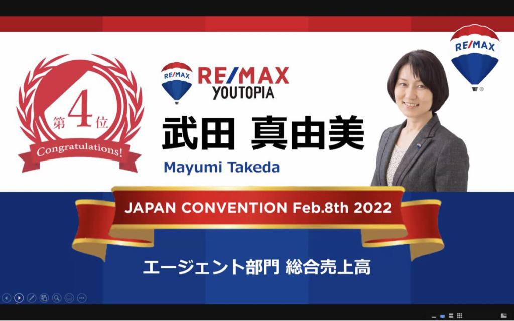 2022/4/25 RE/MAX JAPAN エージェントオンラインセッションにて表彰されました。