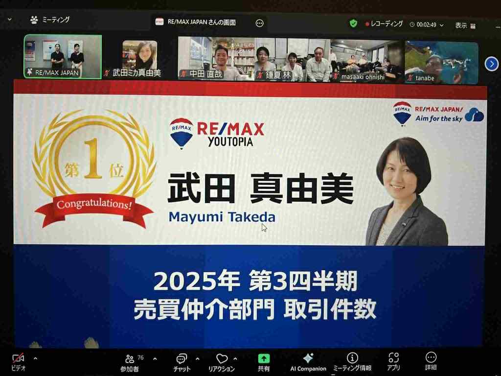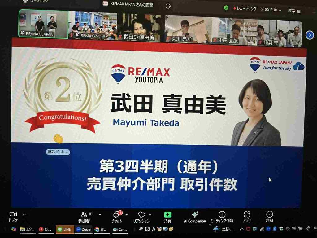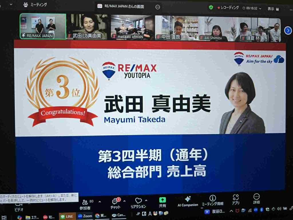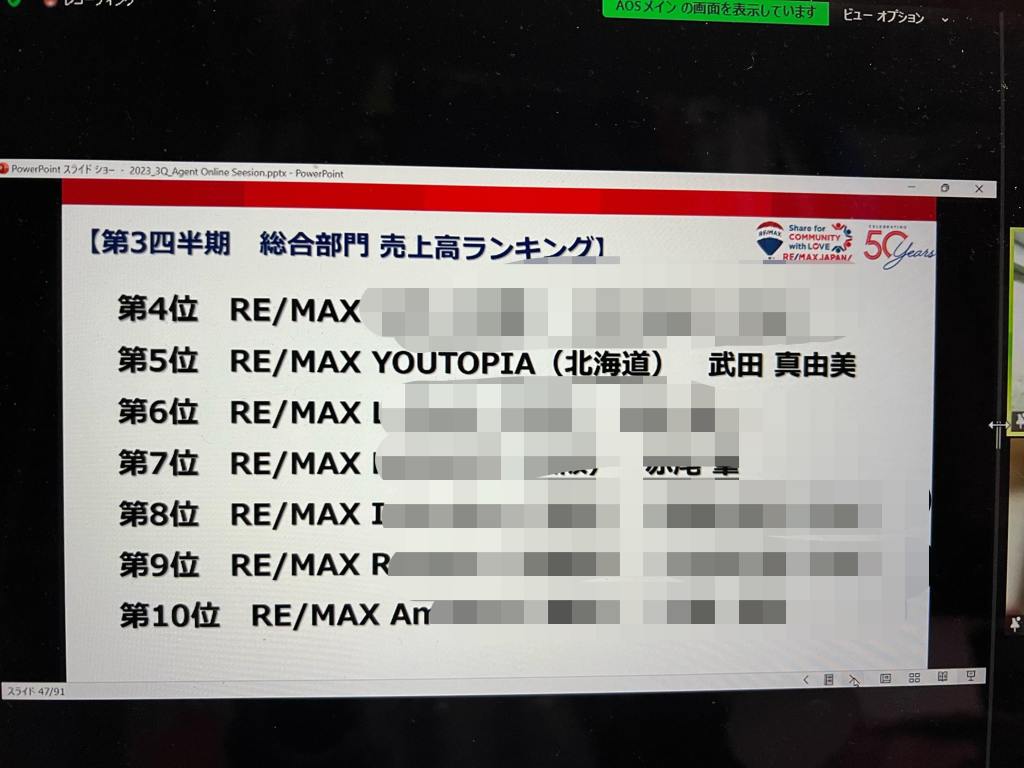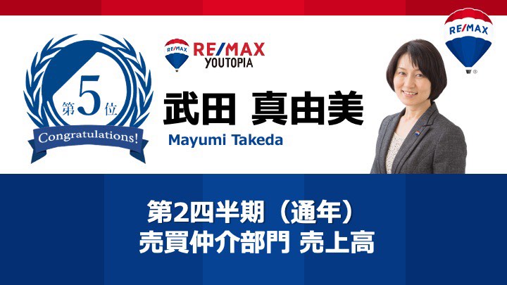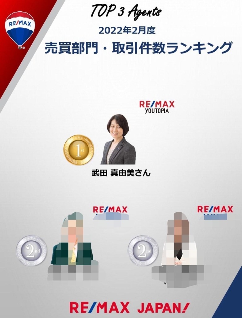 2022/4/25 RE/MAX JAPAN エージェントオンラインセッションにて表彰されました。