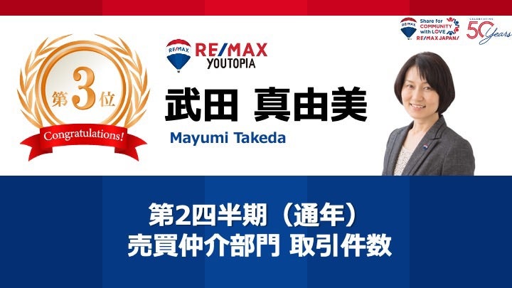 4月〜6月第二四半期 売買仲介部門 取引件数2位🥈
